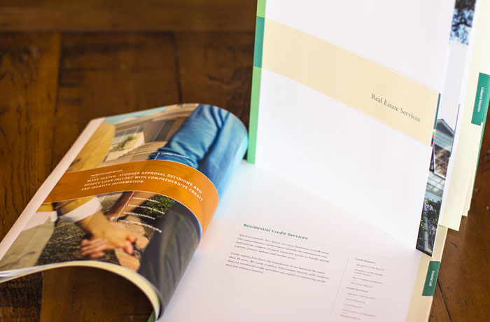 Designed a comprehensive brochure for the company's real estate division, merging a suite of marketing materials into a singular dynamic brochure that utilized classic french folds, diecut inverted tabs and perfect binding.